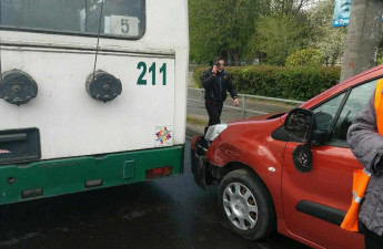 На кільці у Луцьку легковик в'їхав у тролейбус