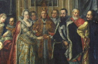 На вінчанні з Катериною Гонзаго князь Микола Радзивіл заміняв друга, короля Польщі Сигізмунда ІІ-го Августа. У львівському Музеї етнограф...