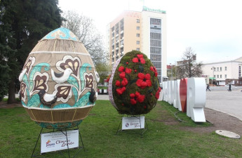 В рамках презентації проекту «Великодні барви» на Театральному майдані Луцька встановили сім гігантських писанок, які прикрашатимуть центральну площу міста протягом Великодніх свят