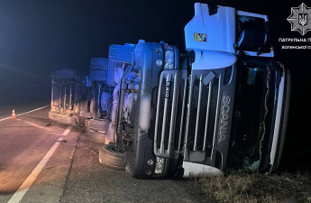 На Волині вантажівка злетіла у кювет і перекинулася