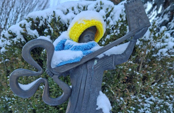 Організаторки та натхненниці мистецького простору «Рукодвійки», переселенки Аліна Андрєєва з Часового Яру та Олена Ярошук з Маріупольського району одягнули луцьких кликунів у теплі шапочки й шалики.