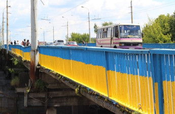 Десятки лучан вкотре долучились до фарбування мосту поблизу «Там-Таму» у кольори національного стягу України