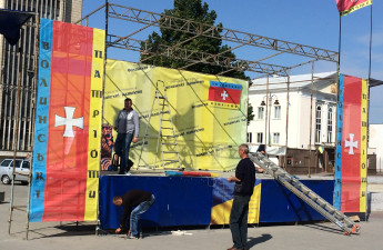 Євромайданівську сцену на Театральній площі у Луцьку ремонтують. У лучан виникли питання щодо того, як довго стоятиме конструкція