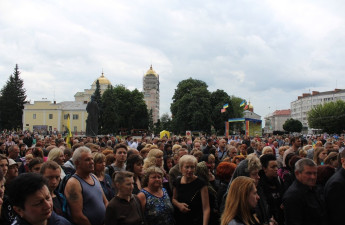 Громадська траурна панахида за загиблим під Луганськом Рустамом Хамраєвим розпочалась на Театральному майдані Луцька.