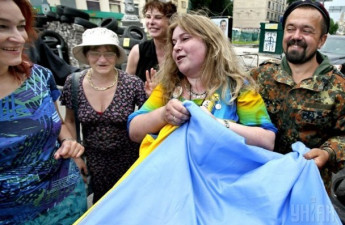 Сьогодні у центрі Києва російські активісти надягли українські вишиванки та пронесли у руках синьо-жовтий прапор, аби підтримати українців. Вони приїхали до столиці України і вирішили влаштувати у центрі Києва свою акцію.
