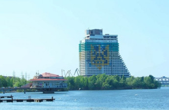 Молоді патріоти Дніпропетровська, зокрема, футбольні фанати «Дніпра», прикрасили один із найбільших довгобудів Дніпропетровська – недобудований готель «Парус» – українським гербом заввишки 16 поверхів
