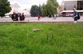 Комунальники Луцька не знають, що робити із залишками конструкції «диво-птахи», що стояла під час Великодніх свят на Театральному майдані
