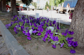 Декілька горщиків із квітами висадили на театральному майдані міста, поблизу Палацу культури міста