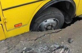 Під землю провалилася маршрутка у Луцьку на вулиці Кравчука. З-під коліс транспорту асфальт «пішов» близько сьомої години вечора