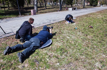 «Героїв-воїнів» та «зомбі», які знімалися у ролику до акції «Зробимо Луцьк чистим», постійно супроводжували дивні погляди перехожих та цікавість правоохоронців