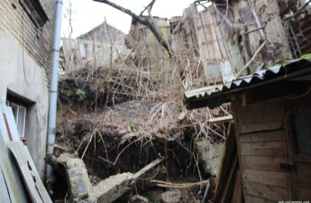 Підпірна стіна рухнула майже на житловий будинок на вулиці Бойка, 17. Обвал трапився у ніч з 12 на 13 квітня