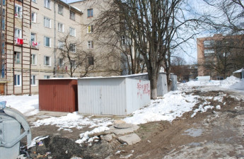 Мешканці будинку на вулиці Орджонікідзе, 30 вважають, що сміттєвоз застряг у ямі їхнього двору через заблокований гаражами проїзд