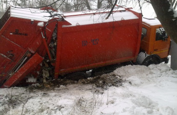 Водій сміттєвоза не зміг впоратися із негодою і автомобіль застряг у снігу. Інцидент трапився у районі вулиць Орджонікідзе і Захарова у Луцьку