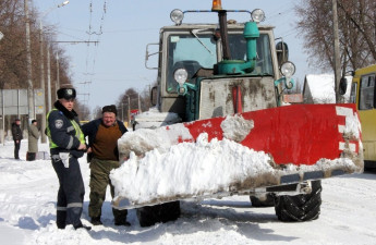 Біля сотні працівників ДАІ витягують з-під снігу тролейбуси і далекобійників на дорогах Волині