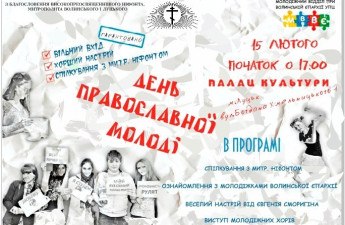 З благословення керуючого Волинською єпархією митрополита Волинського і Луцького Ніфонта на Стрітення Господнє 15 лютого о 17:00 у приміщенні Палацу культури Луцька відбудеться захід присвячений до Дня православної молоді