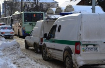 Близько півтори години десятки тролейбусів, «маршруток» та автомобілів простояли у заторі в центрі Луцька через водія автомобіля Mazda, який невдало припаркував машину