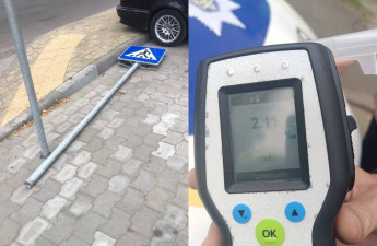 У Луцьку водій збив дорожній знак, втік і напився