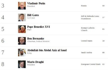 Перше місце в рейтингу найвпливовіших людей світу 2012 року посів президент США Барак Обама
