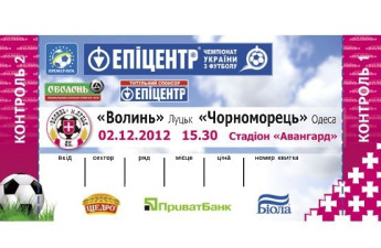 Квитки на матч вісімнадцятого туру чемпіонату України «Волинь» – «Чорноморець» Одеса, що відбудеться у неділю, 2 грудня, о 15.30, продаватимуться у касах стадіону «Авангард» з четверга, 29 листопада, з 14.00