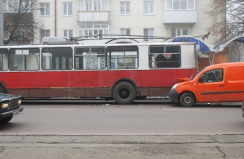 На проспекті Волі в Луцьку пікап іноземного виробництва зіткнувся з тролейбусом, який рухався маршрутом № 8