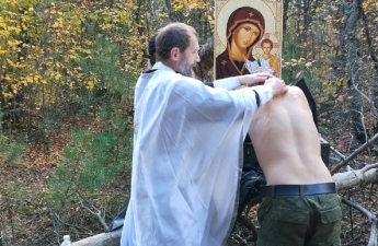 Російський протоієрей Віктор Іванов використав для обряду хрещення окупантів в Україні «похоронні» мішки.