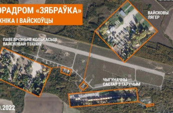Свіжі фотографії з супутника свідчать, що на військовому аеродромі «Зябрівка» біля кордону з Україною побільшало російської техніки та військ.