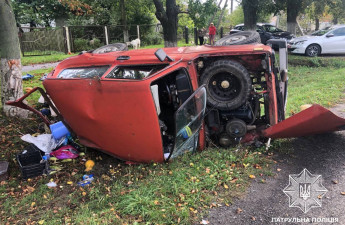 Біля Луцька ВАЗ після зіткнення з Mercedes опинився в кюветі