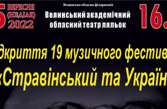 У неділю, 25 вересня, о 16.00 у приміщенні Волинського академічного обласного театру ляльок відбудеться відкриття 19-го музичного фестивалю «Стравінський та Україна».