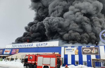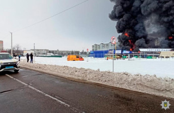 У місті Первомайськ Миколаївської області рятувальники ліквідовують пожежу у торговельному центрі «Епіцентр».