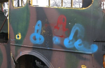 У Ківерцівському музеї невідомі розмалювали автобус, на якому волиняни брали участь у бойових діях на Сході України. Після Нового року автобус перевезуть на територію приватного підприємця, де він зберігатиметься, доки територію не огородять.