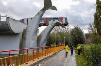 У нідерландському місті Роттердам скульптура у вигляді хвоста кита урятувала поїзд метро, який виїхав за межі захисної огорожі і міг впасти з висоти близько 10 метрів