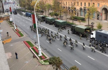 По всьому місту їздить військова техніка і мікроавтобуси з силовиками. Люди формують ланцюги солідарності