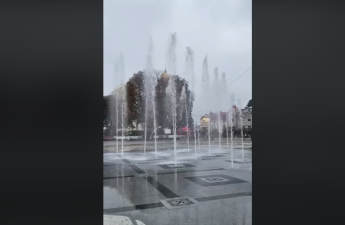 У центрі Луцька тестують запуск нового фонтану, що буде працювати на Театральному майдані