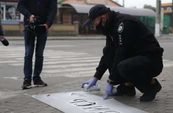 У Луцьку поліція та представники міськради малювали перед пішохідними переходами попереджувальні написи. Фото