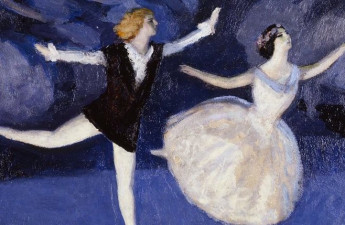 Вацлав Ніжинський і Анна Павлова, що пурхають на полотні Жюля Фландрена — сцена з вистави «Сильфіди» Російських ...