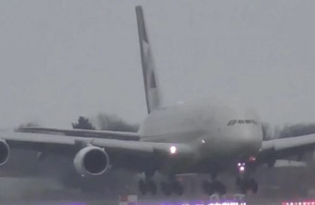 У Великій Британії продовжує лютувати шторм Денніс. Попри те, що десятки авіарейсів вже скасовані, з Airbus A380, що саме приземлявся в час негоди, ледь не сталася трагедія. Шторм застав найбільший пасажирський авіалайнер у небі