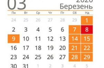 У березні 2020 року в українців буде 10 вихідних днів. Кількість буднів при цьому складе 21 день
