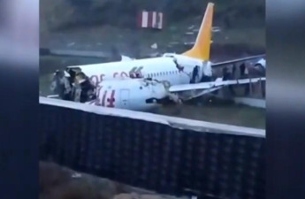 В аеропорту імені Сабіхи Гекчен в Стамбулі (Туреччина) пасажирський літак впав в яр і розвалився навпіл.