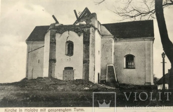 Зруйнований костел у Голобах на ретровідкритках початку ХХ століття