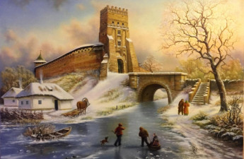 Картину «Зимова казка старого міста «Замок Любарта» луцький художник Віктор Хомяк оцінив у 60 тисяч гривень. Розмір 80х6...