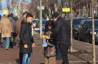 Лучанин Іван Лазорко став свідком проплаченого мітингу проти кандидата в президенти Володимира Зеленського. Роздавала гроші учасникам акції по її закінченню ГО «ВГО «Солідарна молодь» Дінара Габібулаєва.