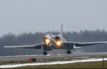 З'явилося відео катастрофи російського бомбардувальника Ту-22М3 в Мурманській області. На кадрах видно, як літак зіткнувся із землею і спалахнув