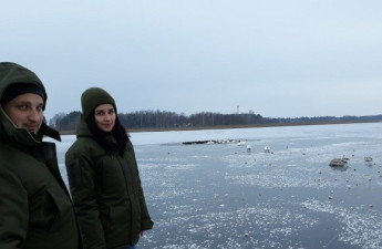 Працівники Прибузького лісгоспу намагаються врятувати лебедів і лисок, що залишились зимувати на озері Згоранське Велике