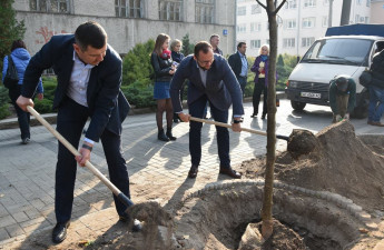 У центрі Луцька, на вулиці Винниченка, висаджують канадські липи.