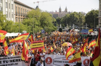 Кілька тисяч іспанців у суботу зібралися на антиурядовий протест у Мадриді, організований маргінальною ультраправою групою