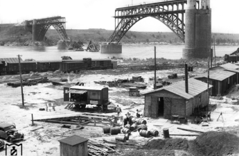 Працівники НКВС підірвали греблю ДніпроГЕСу. Весь день 18 серпня 1941 року через Хортицю, її мости і через греблю йшли, їхали колони біженці...