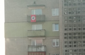 На балконі однієї із багатоповерхівок на 15 мікрорайоні Нововолинська вивісили прапор зі свастикою