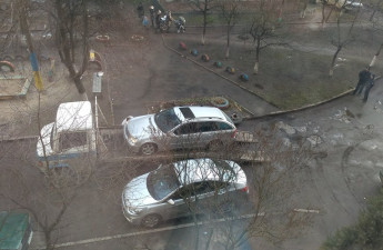 Проколені усі шини - такий новорічний подарунок отримав водій, який неправильно припаркувався перед під'їздом у Луцьку