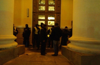 Близько 50 правоохоронців намагаються виштовхати частину учасників акції «Марш за імпічмент», яким вдалося прорватися частково всередину Жовтневого палацу