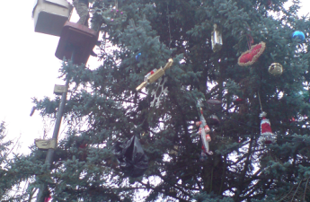 У Любомлі прикрашають новорічну ялинку. Фото